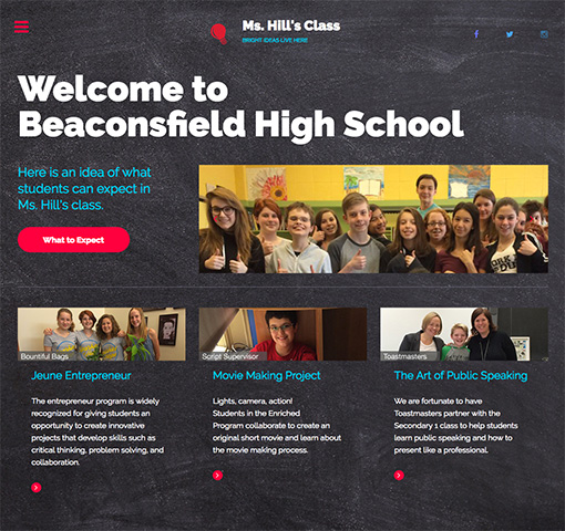 Ms. Hill's website was created to highlight Student Innovation and Entreprenurialship in Secondary One. It also serves to inform the parents and students about what to expect in Secondary One. The students can access their homework assignments online.