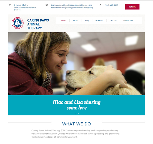 Caring Paws Animal Therapy needed a website with the option to make Donations through Canada Helps.