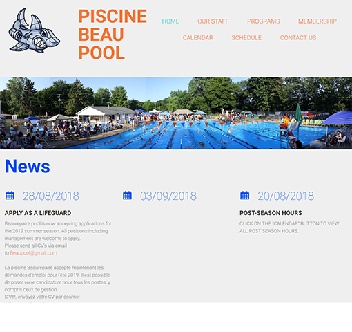Designed Beau Pool's website using a CMS incorporating registration with Stripe payment option using JotForm.